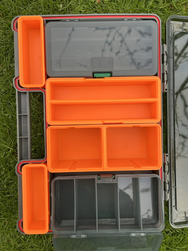 Der Vorfacheinsatz bietet Platz für Vorfachtypen mit einer Länge von 5, 7,5 oder 10 cm.