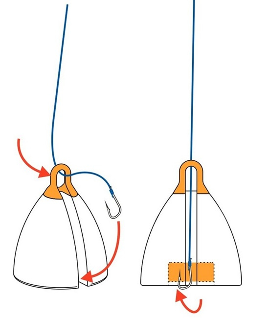 Ermöglicht eine genaue und präzise Tiefenmessung ohne dass der Haken wie sond üblich außen am Lotblei vorbeigeführt wird. Der Haken muss in die obere Öse